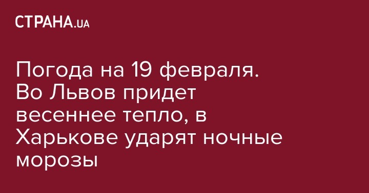 Во вторник, 19 февраля, в Украине сохранится теплая погода без осадков. В некоторых областях будут наблюдаться ночные морозы. Об этом свидетельствует прогноз, размещенный на сайте Укргидрометцентра