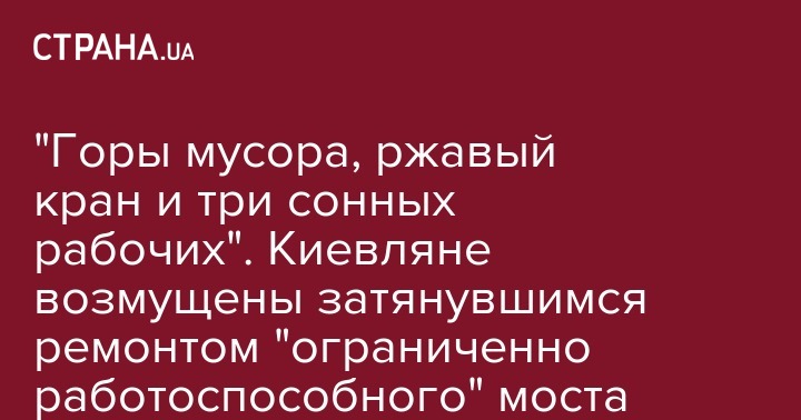 "Удивительные вещи происходят с реконструкцией Моста метро. Представьте. Полуразобранный мост. С одной стороны метро. С другой - обрыв прямо в речку. Горы мусора, один ржавый кран, трое сонных рабочих, которые перекладывают кирпичи с таким видом, вроде они стену Яценюка разбирают. А им за это денег не платят. Все делается оооооооочень медленно. Никто никуда не торопится. Разгар рабочего дня. Рабочей недели. Не реконструкция, а целая инсталляция. И километровые пробки. Месяц за месяцем. Парализованный левый берег. В Турции за такое подрядчика на столбе бы давно повесили. В Европе сменили бы мэра. А у нас - все терпят", - отметила Светлана Крюкова, опубликовав соответствующие фото.