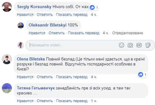 В комментариях уже отреагировали пользователи Facebook, назвав инцидент ужасом, полным беспорядком, запущенностью, разрухой и полной бесхозяйственностью в Киеве.