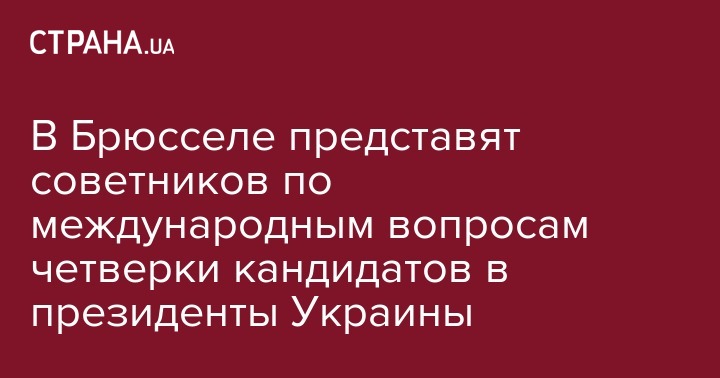 В понедельник, 25 февраля, в Брюсселе представят внешнеполитических советников кандидатов на пост президента Украины - Петра Порошенко, Анатолия Гриценко, Юлии Тимошенко и Владимира Зеленского. Они примут участие в дискуссии в рамках "Украинской лаборатории", организованной Офисом связи украинских аналитических центров в Брюсселе, сообщает "Европейская правда".