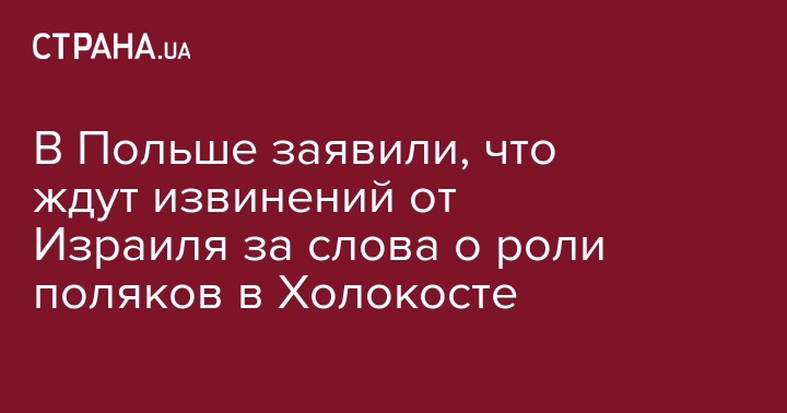 В Польше до сих пор ждут извинений от Израиля за комментарий и.о. главы МИД Израиля Исраэля Каца о роли поляков в нацистском Холокосте (массовых убийствах еврейского населения). Об этом заявил заместитель главы МИД Польши Шимон Шинковский вель Сенк, передает Reuters.