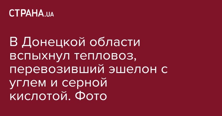 В Бахмутском районе Донецкой области загорелся тепловоз, перевозивший вагоны угля и цмстерну с серной кислотой. Инцидент произошел около 04:00, 20 февраля.  Об этом сообщается на сайте регионального управления ГСЧС.