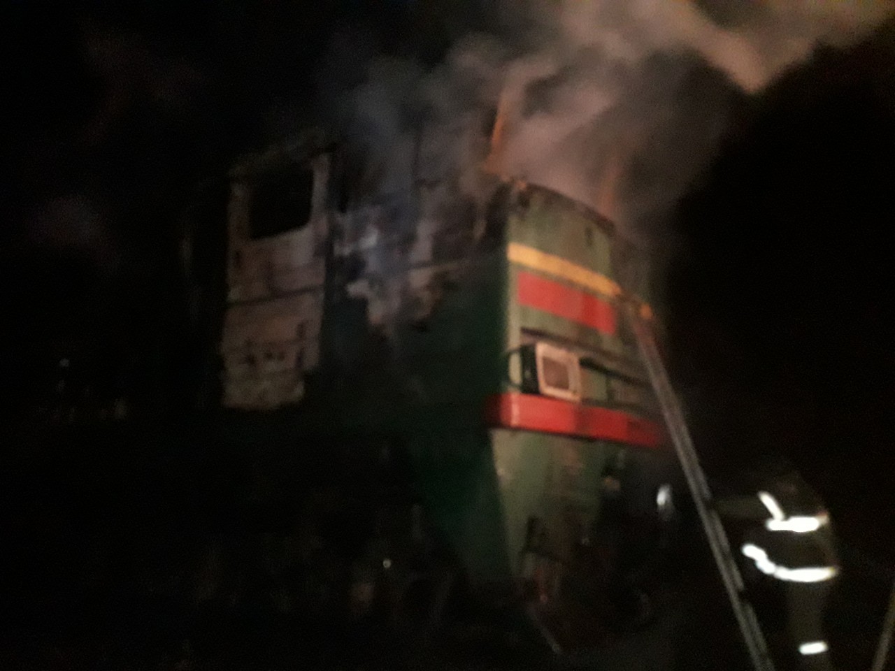 "Бойцы 8-го Государственного пожарно-спасательного отряда, прибывшие на место происшествия, выяснили, что возгорание произошло в кабине машиниста. Тепловоз следовал с вагонами угля и цистерной с серной кислотой. Пожарные немедленно приступили к тушению пожара. Спасатели локализовали пожар в 05:17 и ликвидировали в 05:44", - сообщили в ГСЧС.