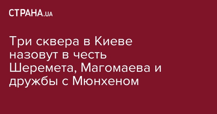 Кроме того, по случаю 30-летия братских связей Мюнхена и Киева земельный участок на пересечении Зоологической и Дегтяревской улиц получил название Мюнхенский сквер. А на перекрестке улицы Сечевых Стрельцов и проспекта Вячеслава Чорновола по представлению посольства Азербайджана учредят Сквер имени Муслима Магомаева - народного артиста, оперного и эстрадного певца СССР.