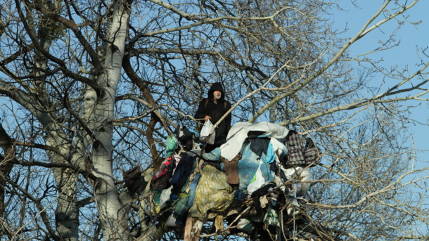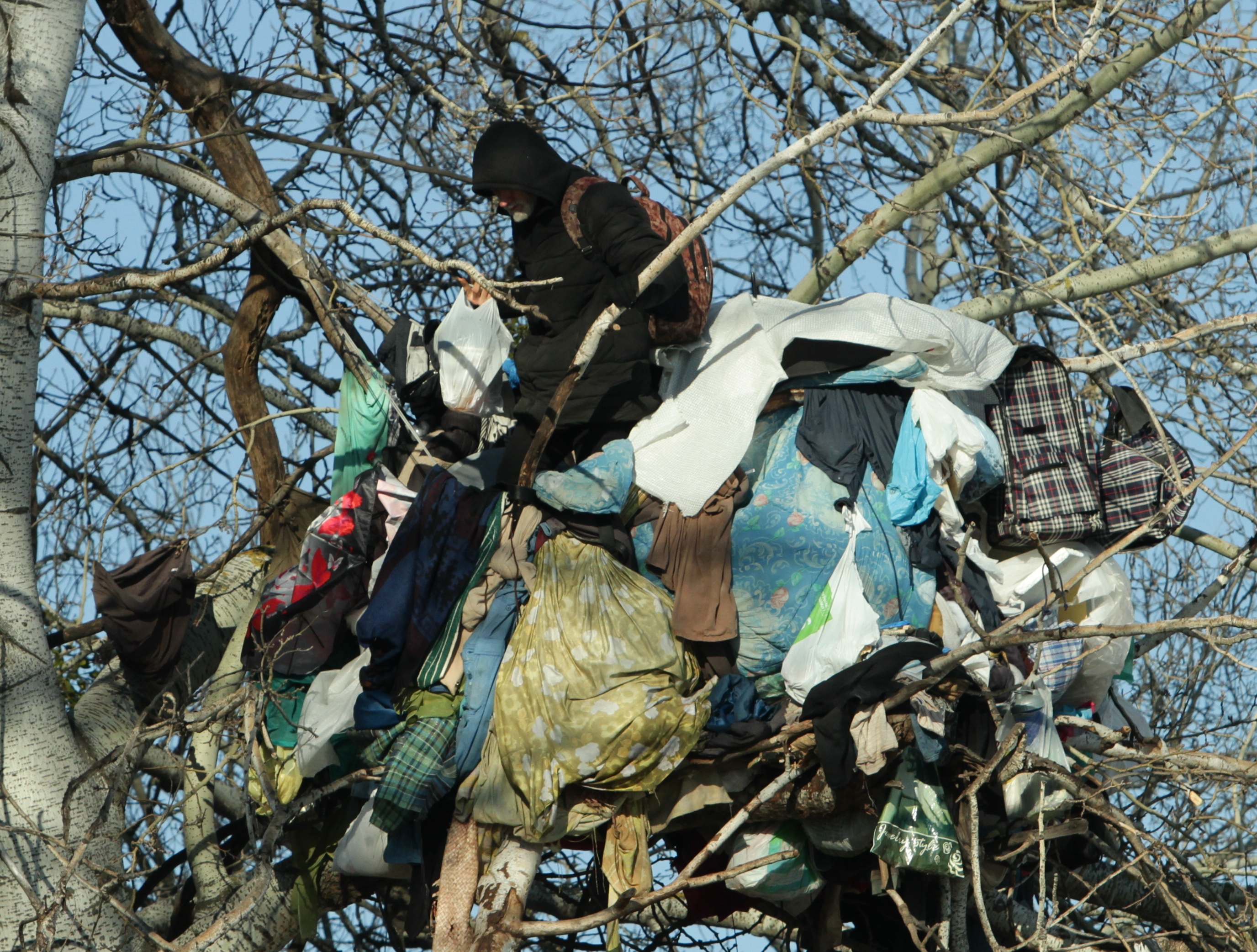 В Киеве на Бандеры уже два года на дереве живет бывший пожарный. Фото