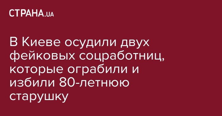 В Киеве Дарницкий суд огласил приговор двум женщинам, которые под видом соцработниц ограбили 80-летнюю киевлянку и избили ее. Об этом сообщает пресс-служба прокуратуры города Киева
