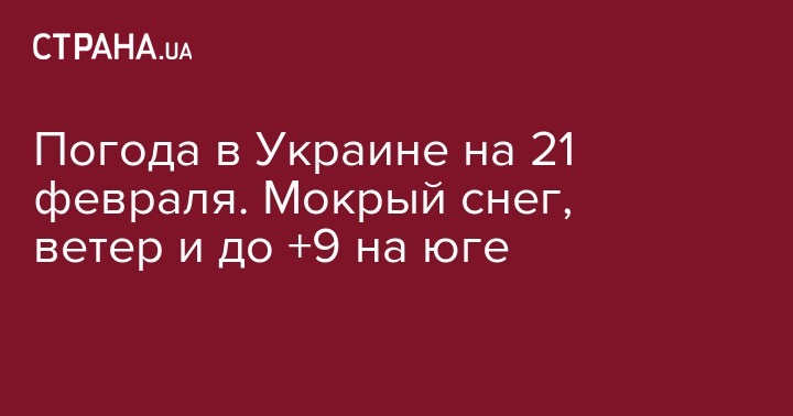 Сегодня, 21 февраля, на большей части территории Украины ожидается облачная погода, местами - дождь и мокрый снег. Без осадков будет только в Киеве и на юге страны, сообщает сайт Укргидрометцентра.