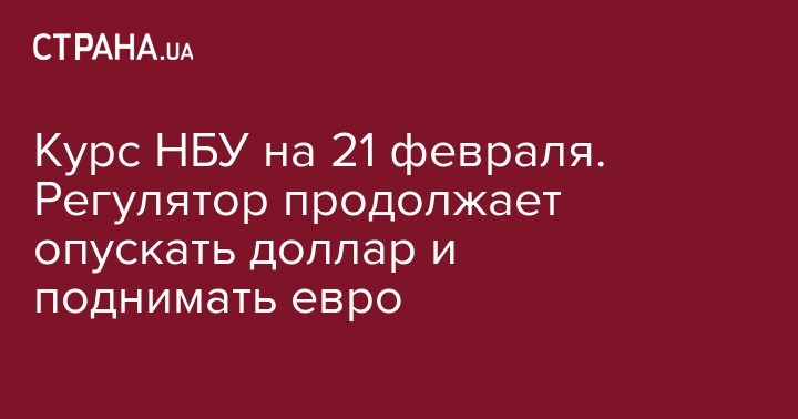 Национальный банк Украины (НБУ) на 21 февраля 2019 года установил официальный курс доллара на уровне 27,08 грн/доллар, что на 9 копеек ниже по сравнению с предыдущим банковским днем. Об этом свидетельствуют данные на сайте регулятора.