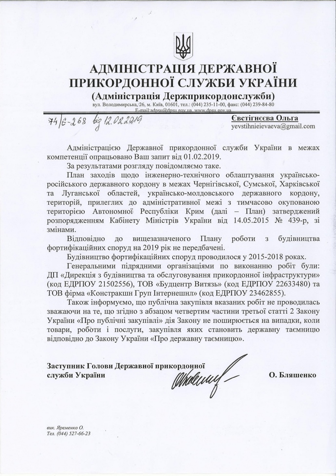 Напомним, в конце ноября 2018 года министр внутренних дел Арсен Аваков заявлял, что работы по оборудованию российско-украинской границы выполнены на 47%. В феврале 2019 Госпогранслужба оценила степень готовности проекта в 30%. То есть всего за два месяца степень выполнения проекта сократилась на 17%