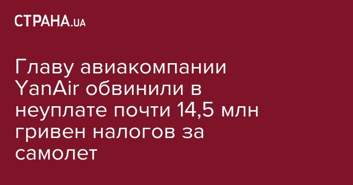 Главу авиакомпании YanAir обвинили в неуплате почти 14,5 млн гривен налогов за самолет