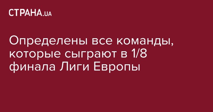 Определены все команды, которые сыграют в 1/8 финала Лиги Европы