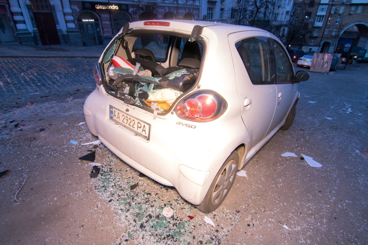 На пути своего движения Renault протаранил автомобиль Toyota, снес дорожный знак и ситилайт. А в конце грузовик скатился по ступеням в арку и вылетел на Крещатик. Кабина грузовика перевернулась и была сдавлена весом кирпичей, которые высыпались из прицепа.