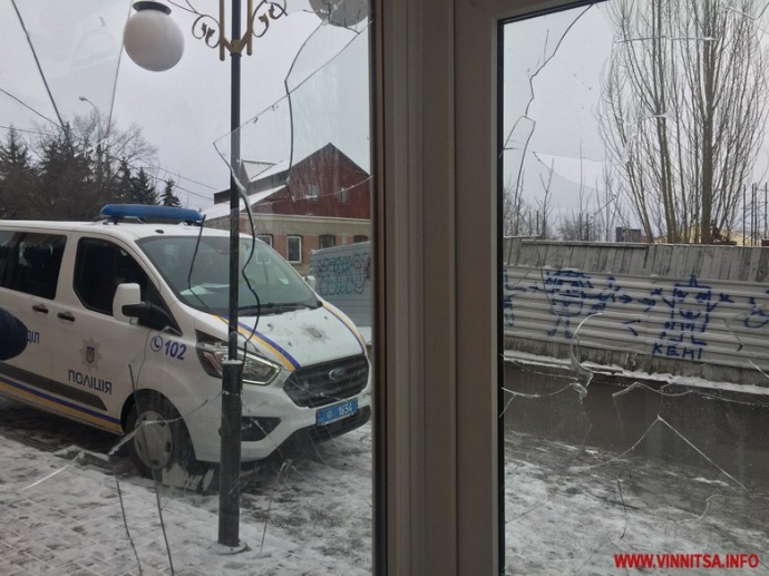 Уточняется, что утром в пятницу в полицию поступило сообщение, что неизвестные разбили окна входной двери общественной приемной одной из политических партий в Виннице по улице Соборной.