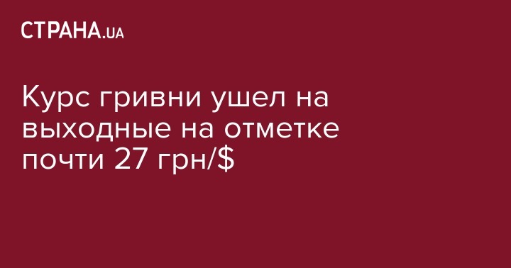 Курс гривни ушел на выходные на отметке почти 27 грн/$