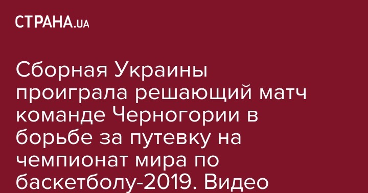 Сборная Украины проиграла решающий матч команде Черногории в борьбе за путевку на чемпионат мира по баскетболу-2019. Видео