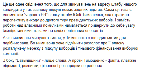 По его словам, у обвинений в адрес штаба Порошенко в подкупе избирателей нет никаких оснований, а все разговоры вокруг этого являются элементом "черного PR" со стороны штаба Юлии Тимошенко.