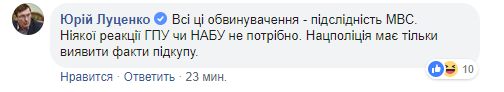 "Все эти обвинения - подследственность МВД. Никакой реакции ГПУ или НАБУ не требуется. Нацполиция должна только выявить факты подкупа", - написал Генпрокурор в соцсети.