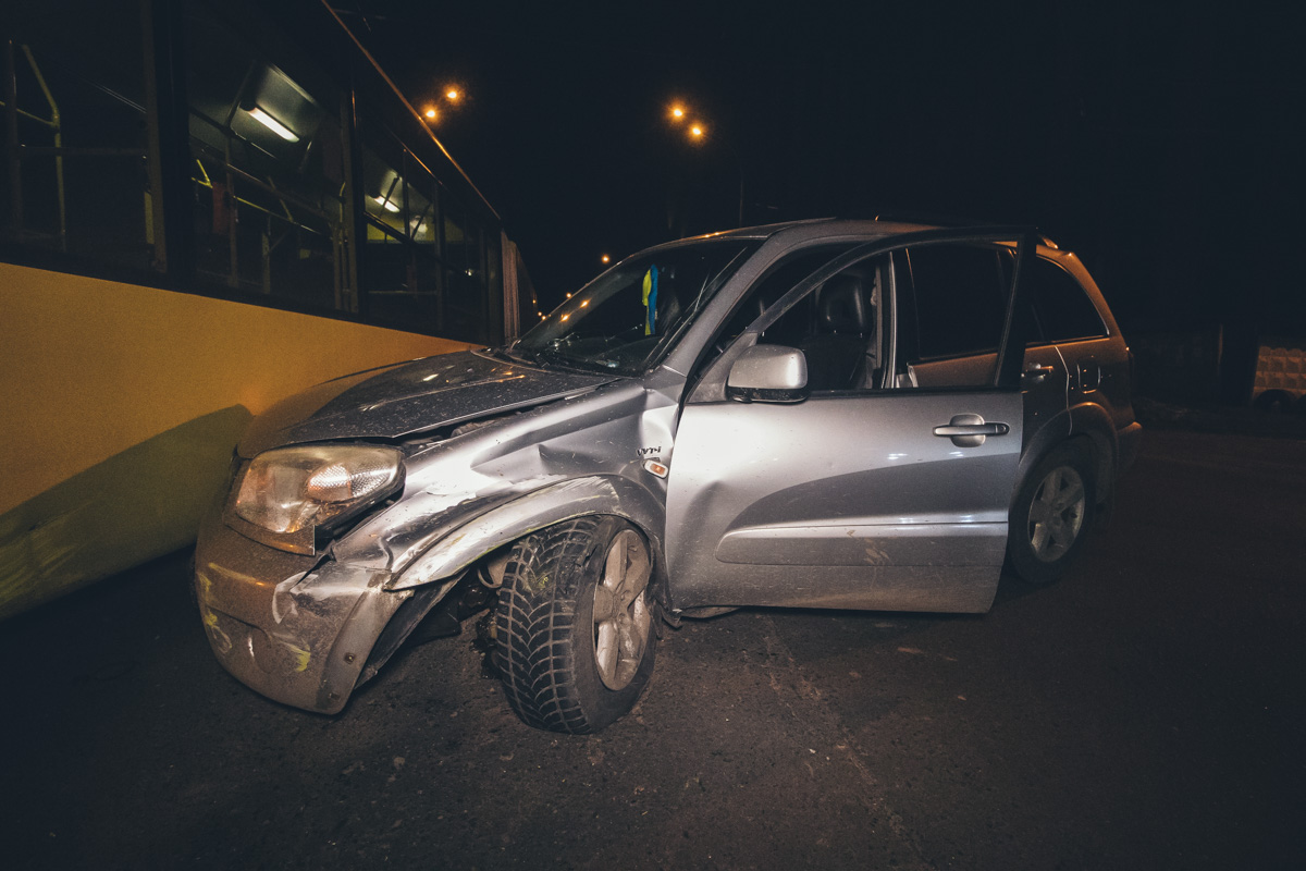 На улице Максимовича столкнулись троллейбус №50 и паркетник Toyota RAV4. Установлено, что "японец" двигался в сторону улицы Вильямса. По встречной полосе ехал троллейбус, без пассажиров, который направлялся в депо. Во время движения, мужчине за рулем Toyota стало плохо, он потерял управление и врезался в троллейбус.