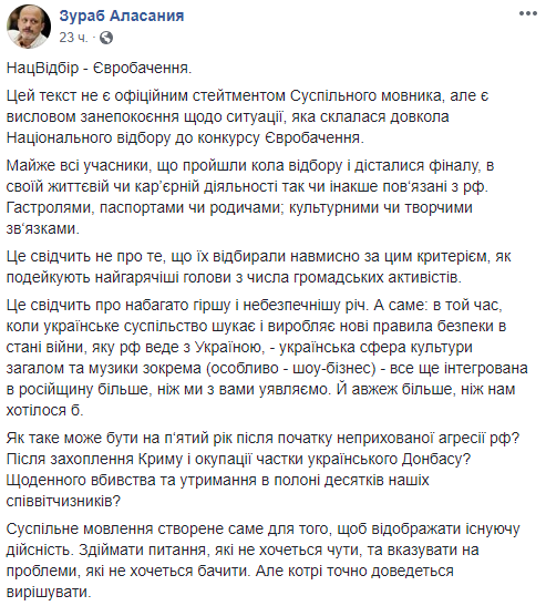 Тем временем отправленный в отставку председатель Национальной общественной телерадиокомпании Украины Зураб Аласания дал понять, что результаты конкурса могут еще измениться.