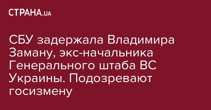 Сегодня утром, 25 февраля, СБУ совместно со следователями военной прокуратуры задержала за госизмену бывшего начальника Генерального штаба Вооруженных Сил, генерал-полковника Владимира Заману.