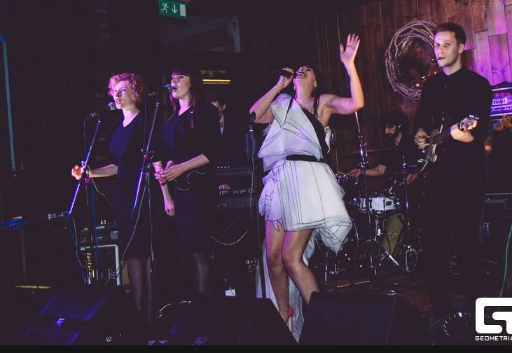 На снимках Джамала в коротком белом платье с обнаженными плечами поет на сцене ресторана. Исполнительница находится в хорошем настроении. Гости в момент ее выступления пьют, закусывают и аплодируют артистке.