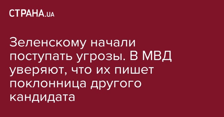 Зеленскому начали поступать угрозы. В МВД уверяют, что их пишет поклонница другого кандидата