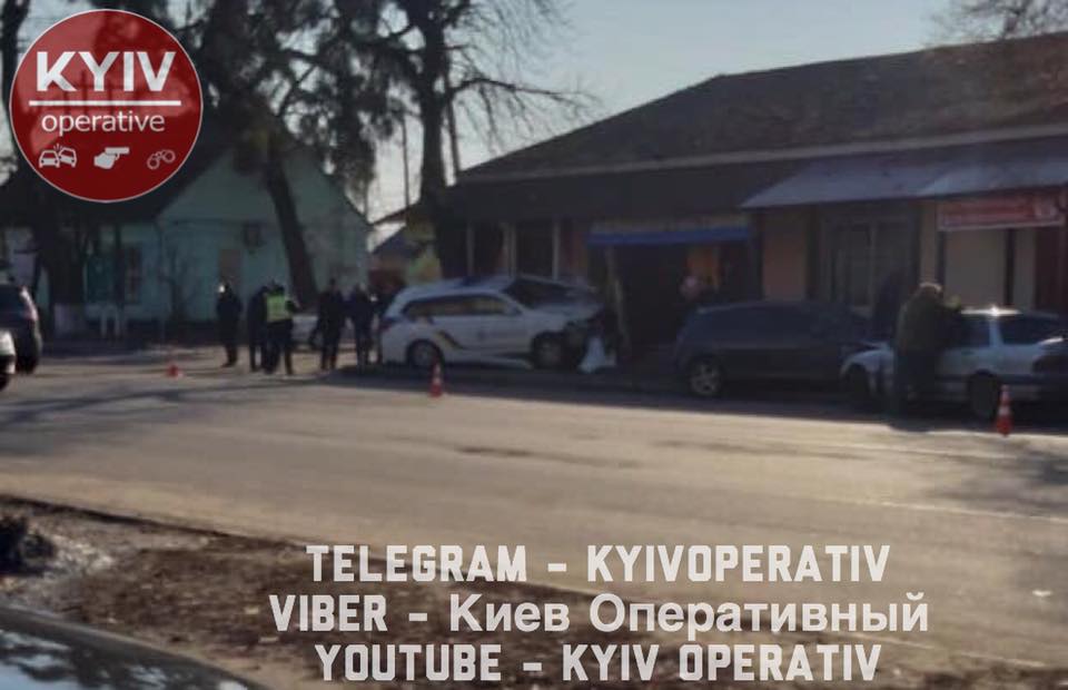 В понедельник, 25 февраля, в селе Новые Петровцы Киевской области полицейские на дежурном автомобиле влетели в магазин с автозапчастями, устроив тройное ДТП. В результате происшествия пострадали несколько человек. Об этом сообщает "Киев Оперативный" на странице в Facebook.