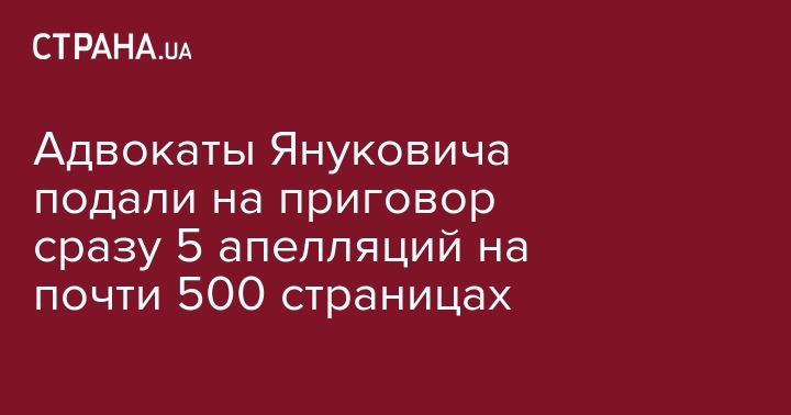 Адвокаты Януковича подали на приговор сразу 5 апелляций на почти 500 страницах
