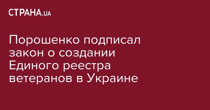 Во вторник, 26 февраля, президент Петр Порошенко подписал закон о создании Единого госреестра ветеранов войны, принятый Верховной Радой на заседании 7 февраля. Об этом свидетельствует информация в карточке законопроекта № 9508, опубликованной на сайте парламента