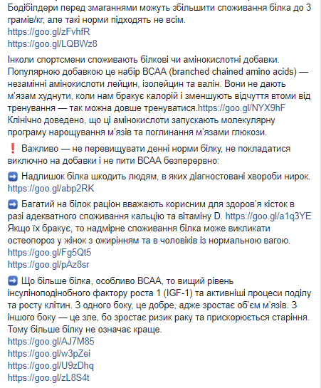 Каждый прием пищи должен содержать что-то белковое, поэтому не стоит съедать большой стейк раз в день в надежде закрыть дневную потребность в аминокислотах. Белковая пища - это не только мясо, а бобовые, рыба, яйца, молочные продукты, орехи и переработанная соя. Что касается белковых добавок, они не могут полностью удовлетворить потребность организма в белках, также их не стоит принимать дольше полугода. Стоит помнить, что переизбыток белка может привести к негативным последствиям, поэтому Супрун рекомендует составлять рацион с учетом ее советов.