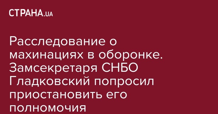 Первый замсекретаря Совета национальной безопасности и обороны Олег Гладковский обратился в правоохранительные органы с заявлением о проверке обнародованных в журналистском расследовании Bihus.Info фактов о незаконных сделках при закупках в армии. Также он попросил временно приостановить его полномочия в СНБО. Об этом он сегодня заявил агентству "Интерфакс-Украина".