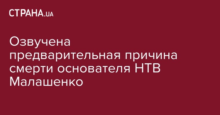 Сообщается, что во вторник, 26 февраля, медики провели аутопсию, результаты которой выявили предварительную причину смерти Малашенко. Однако итоговый доклад по результатам вскрытия будет готов только через месяц. Кроме того, по предварительным данным, смерть сооснователя НТВ не имеет криминального характера.