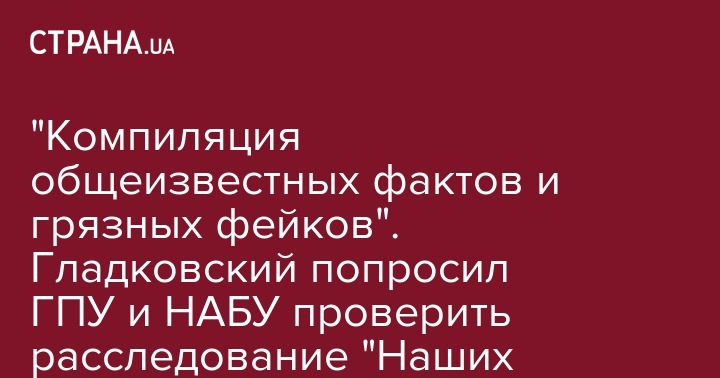 Первый заместитель секретаря Совета национальной безопасности и обороны Олег Гладковский после публикации первой серии масштабного журналистского расследования о хищениях в оборонной сфере, фигурантами которого является он и его сын Игорь, попросил Генпрокуратуру и НАБУ проверить опубликованные данные. Об этом сказано в заявлении, обнародованном на сайте СНБО.
