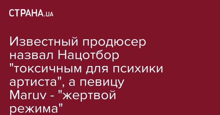 Известный продюсер назвал Нацотбор "токсичным для психики артиста", а певицу Maruv - "жертвой режима"
