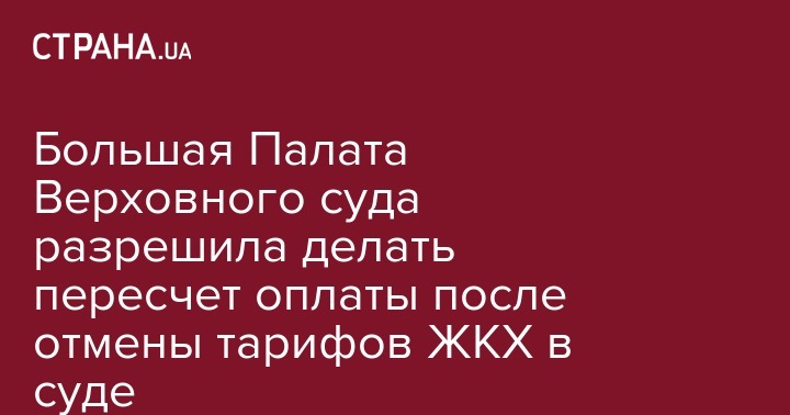 В Большой Палате Верховного Суда во время рассмотрения дела № 757/31606/15-ц решили, что при отмене судом тарифов на жилищно-коммунальные услуги по обращению потребителя цена коммуналки должна пересчитываться. Об этом сообщает Юрлига