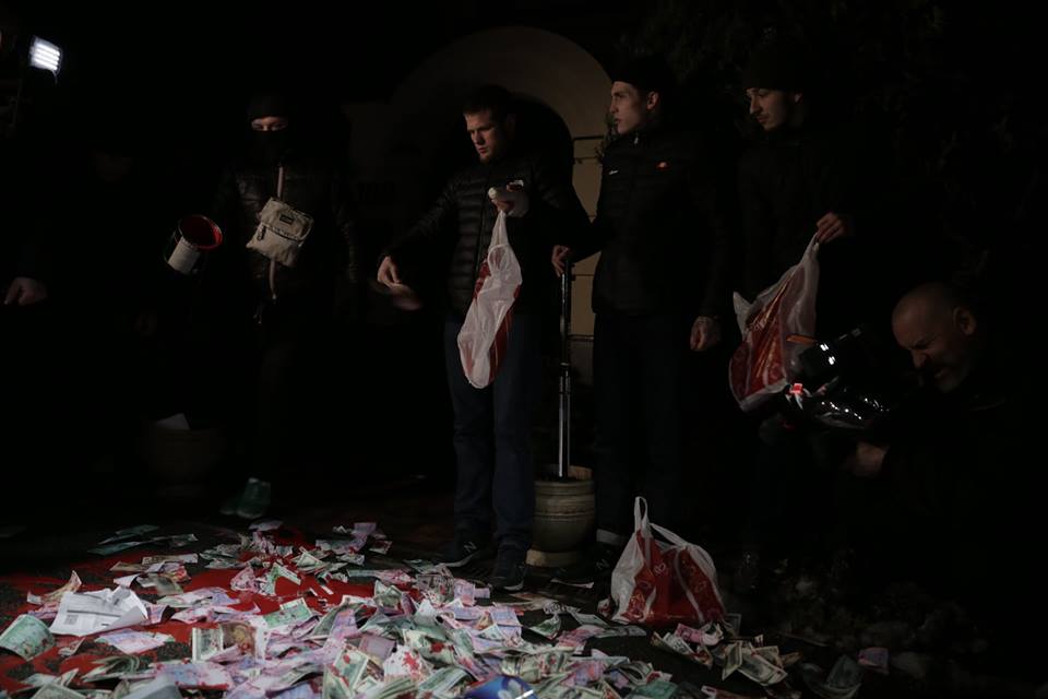 "Привет за воровство на оборонке". Националисты жгли салюты и файера у дома Гладковских в Козине. Фото и видео