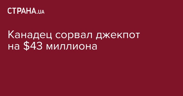 Канадец сорвал джекпот на $43 миллиона