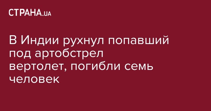 Не менее семи человек, включая шестерых военных, погибли сегодня при катастрофе вертолета Ми-17 в штате Джамму и Кашмир на севере Индии. Об этом сообщает ТАСС со ссылкой на индийский телеканал NDTV.