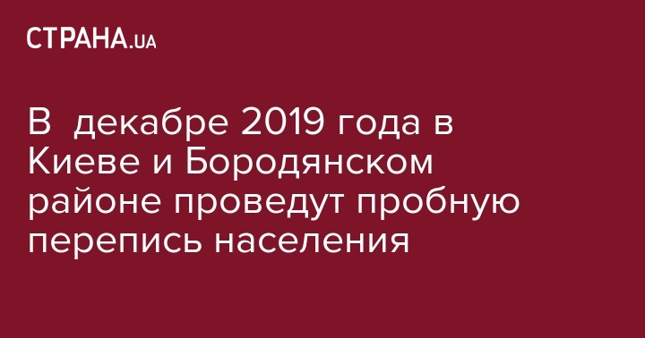 Пробная перепись населения накануне Всеукраинской переписи-2020 будет проведена в декабре 2019 года в одном из районов Киева и Киевской области. Об этом со ссылкой на Государственную службу статистики пишет УНН.