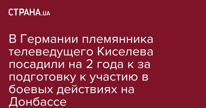 В Германии племянника телеведущего Киселева посадили на 2 года к за подготовку к участию в боевых действиях на Донбассе