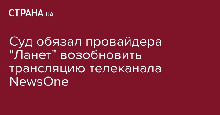 Хозяйственный суд Киева обязал провайдера "Ланет" возобновить трансляцию телеканала NewsOne. Телеканал не только выиграл суд после двух месяцев борьбы за права своих телезрителей, но еще и получил юридическое обоснование для возвращения в кабельную сеть провайдера "Ланет". Об этом сообщается на сайте телеканала.