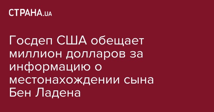 "Сегодня Госдепартамент объявляет награду в размере до $1 млн за информацию, которая может привести к идентификации или указать на местонахождение в любой стране лидера группировки "Аль-Каида" Хамзы бен Ладена", - сказал он.