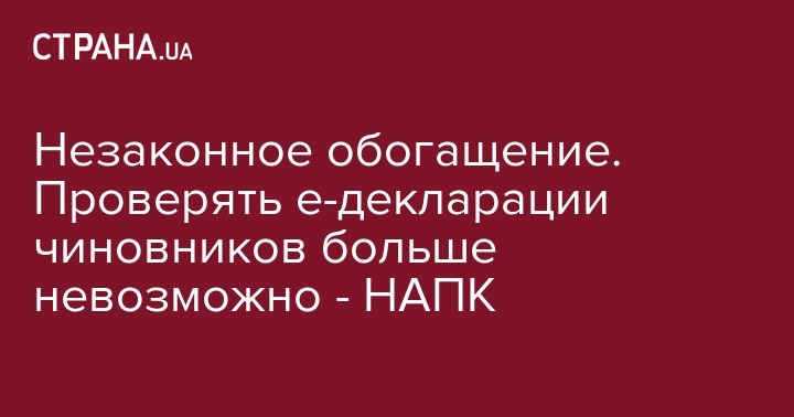 В Национальном агентстве по предотвращению коррупции заявили, что установление признаков незаконного обогащения в е-декларациях украинских чиновников за 2015-2018 годы теперь оказалось невозможным. Об этом идет речь в сообщении НАПК, передают "Украинские новости"