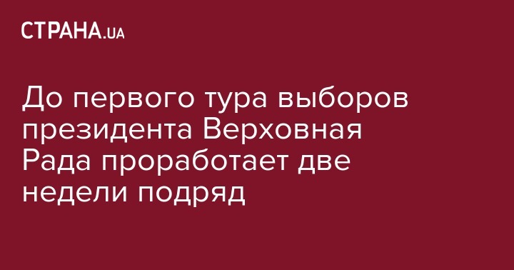 В соответствии с календарным планом до первого тура выборов президента Украины, которые состоятся 31 марта, Верховная Рада будет работать еще две недели подряд в пленарном режиме - с 12 по 15 марта, а также с 19-го по 22-е. Об этом сообщает "Интерфакс-Украина"
