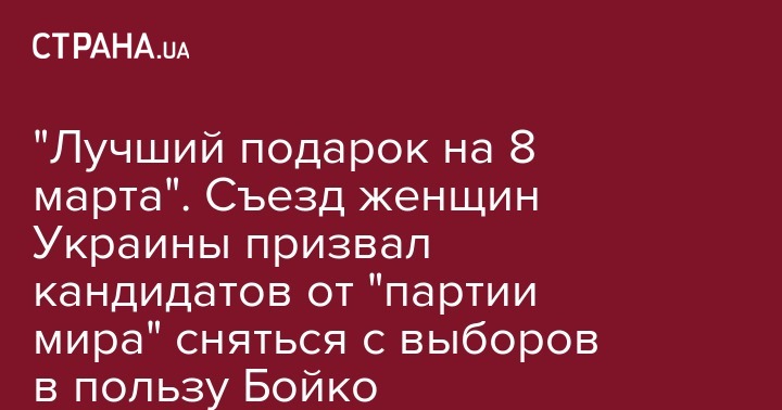 "Лучший подарок на 8 марта". Съезд женщин Украины призвал кандидатов от "партии мира" сняться с выборов в пользу Бойко