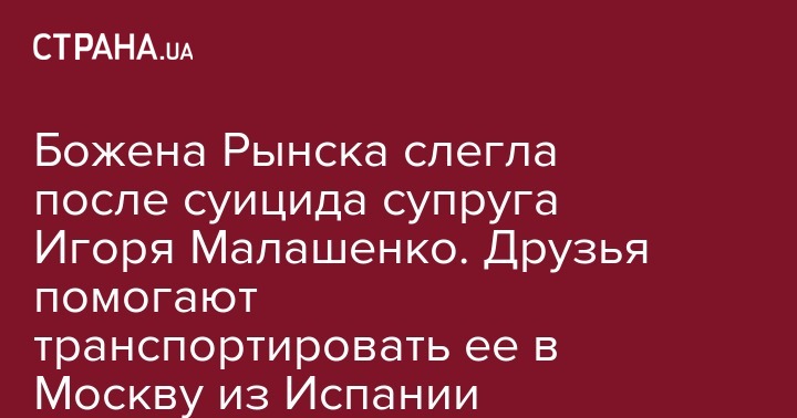 Божена Рынска слегла после суицида супруга Игоря Малашенко. Друзья помогают транспортировать ее в Москву из Испании