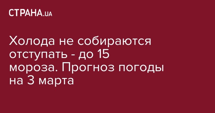 По Украине также будет холодно. "В сутки 3 марта – переменная облачность, без осадков. Ветер северо-западный с переходом в юго-западный, 7-12 м/с. Температура ночью 6-11° мороза, в Сумской и Черниговской областях местами 12-15° мороза, днем 2-7° тепла, на Левобережье - от 2° мороза до 3° тепла ", – говорится в сообщении Укргидрометцентра.