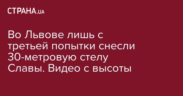 Во Львове снесли 30-метровую стелу Монумента славы, что расположена по ул. Стрийской. Об этом сообщает местное издание "Варта1". Это удалось сделать лишь на с третьей попытки.