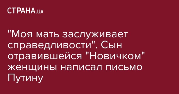 "Моя мать заслуживает справедливости". Сын отравившейся "Новичком" женщины написал письмо Путину