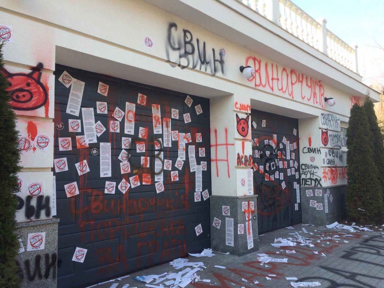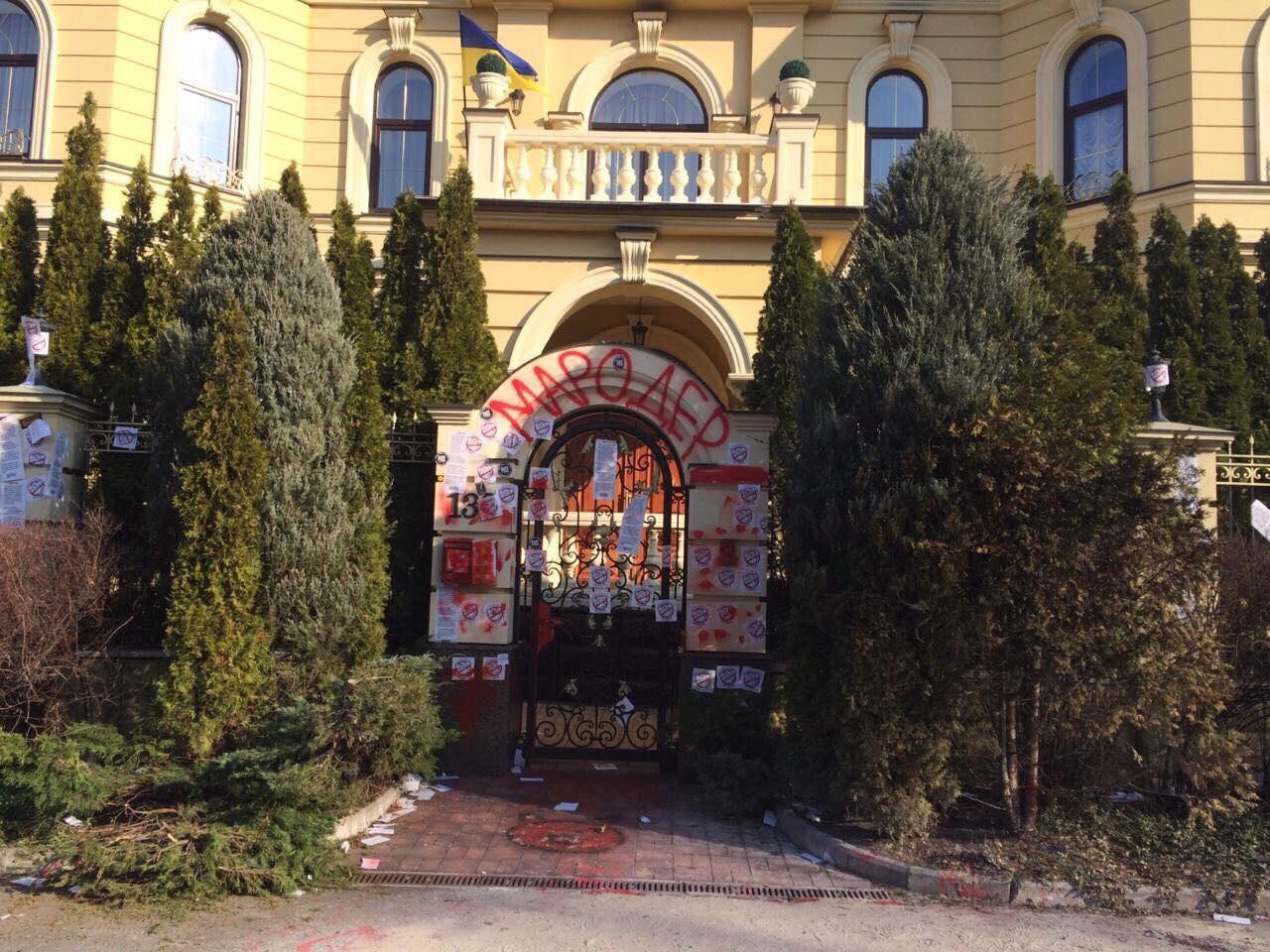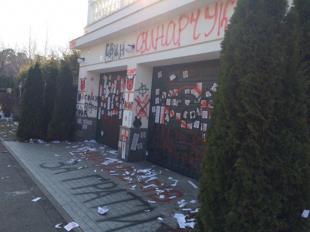 На особняке соратника Порошенко написали "Мародер". Фоторепортаж